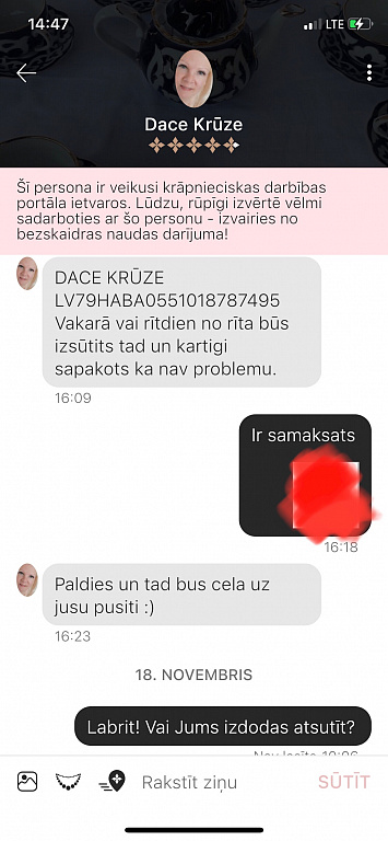Nata Is 30. november 2021, 12:04 LUDZU ATGRIEZT NAUDAS PAR PRECI PAR KURU ES SAMAKSĀJU UN TA ARI NESAŃEMU! !!!! Nata Is 30. november 2021, 12:04 LUDZU ATGRIEZT NAUDAS PAR PRECI PAR KURU ES SAMAKSĀJU UN TA ARI NESAŃEMU! !!!!