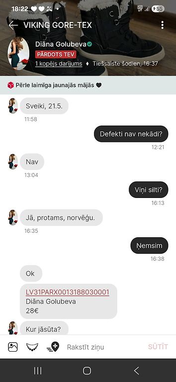Sarežģīts pircējs, ar draudiem WatsApp un neskaitāmiem zvaniem. Zābaciņi kopti un tīri, protams, lietoti, bez jebkāda veida “liela cauruma”. Netika pozicionēti kā jauna prece, kā pircēja vēlētos. Preces cena tika norādīta 20% no jaunas preces vērtības. Visas interesējošās detaļas tika apspriestas sarakstē. Izraisa šaubas godprātības jautājumā. Pircēja zābaciņus tirgo tālāk ar tekstu “ Vienam zabacinam iekspusē neliels nobruzajums, kas