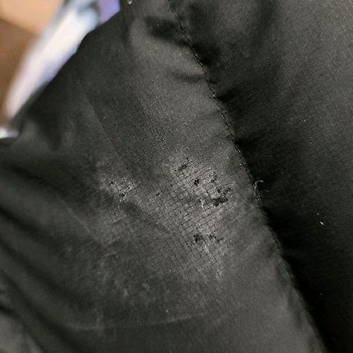 Sludinājums ar neprecīzu norādi, lietots, lieliskā stāvoklī. Jakai bija bojājums, nelieli pleķi, kas būtu nebūtiski, bet bija arī elkoņa nobrāzums, principā mazi caurumi. Piedāvāju atgriezt preci, piekrita, bet tad pazuda.