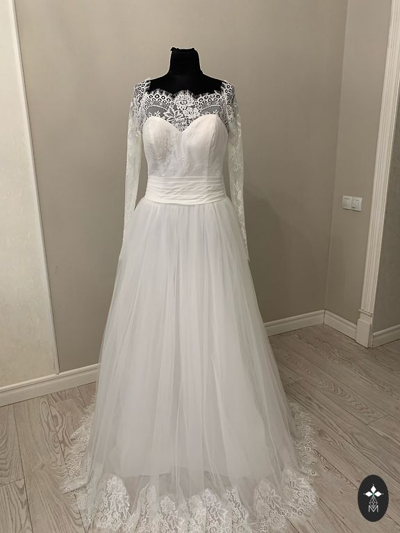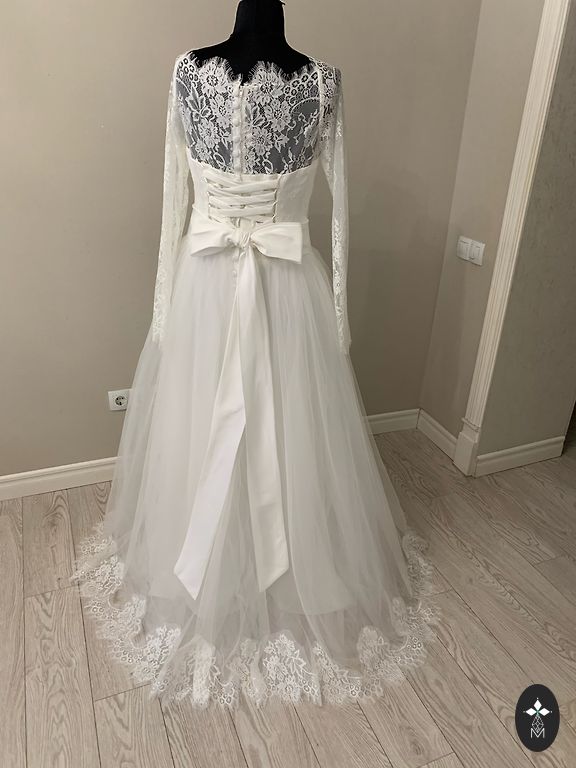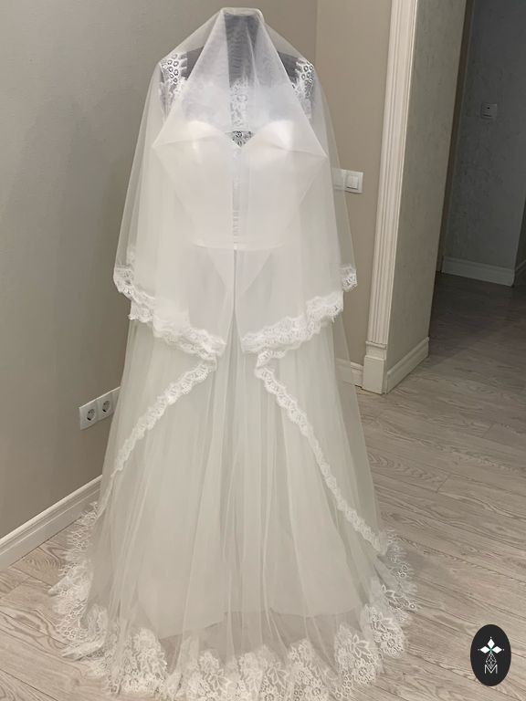 Pulmakleit. Suurus S/M. Tagant lukuga ja peal paelad. Kleit ei ole valge. Loor on valge, külge on jäänud kamm. Proovida saab Kengaragsis. Fotol oli all kolme rõngaga alusseelik (renditud).