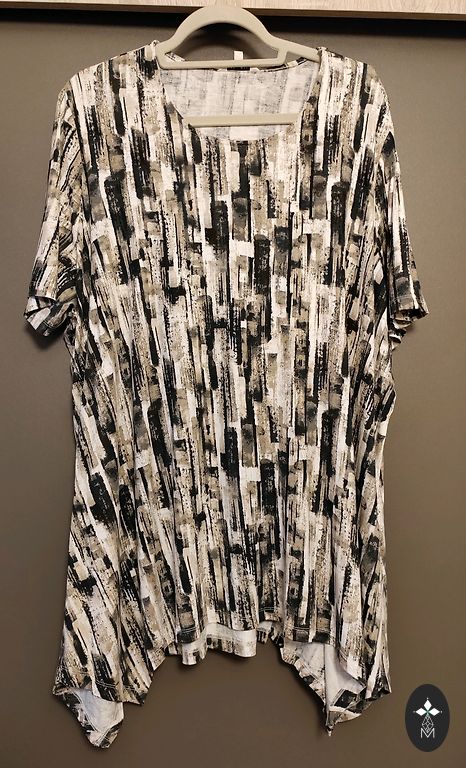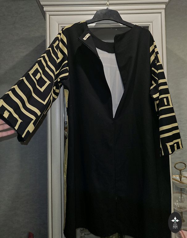 Туника черная с бежевым. Спереди шелковистая ткань, сзади трикотаж.
