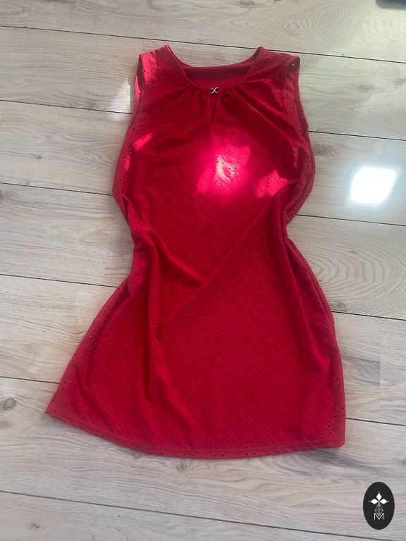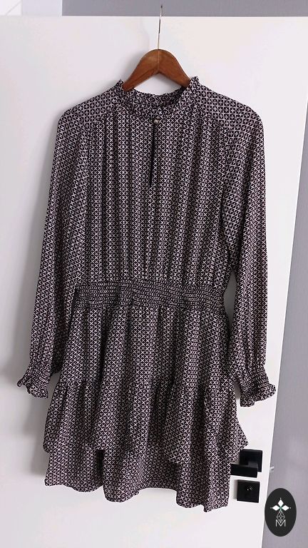 Skaista mini kleita. Ar volāniem un sasienāmo banti priekšā.