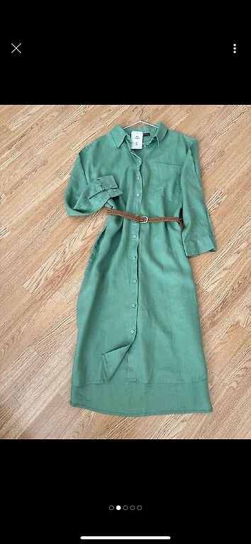 Külgedel pikem, pikkus lühimas kohas 85 cm, külgedel 105 cm, varrukad 50 cm, rinnus 110–112 cm, puusadel 120–122 cm. Kleit ei ole elastne. Tagant paelaga.