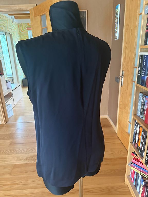 Tõmmatud 1 kord väljalaske jaoks. Rinnaümbermõõt kuni 88cm, vöökoht 70cm. Tagaküljel tõmblukk. Suurus 36. Küljel, käte peal, volangid.