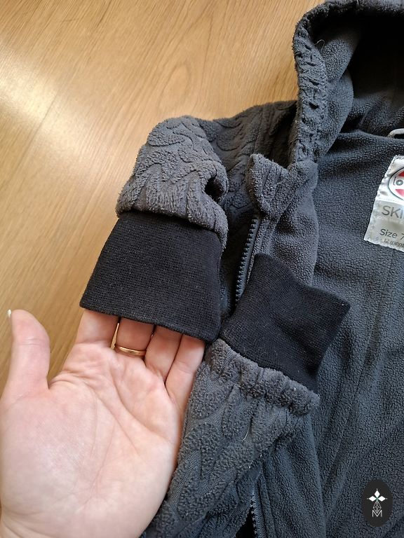 Kombinesoon sobib ideaalselt kevadeks, kuna on termo funktsiooniga. Võib pesta pesumasinas 40 kraadi juures. Sobib ka paksema kombinesooni alla või vankrikotti, kui talv tagasi tuleb. Kirjutatud 80.suurus, kuid kandsime 74.suurus. Lühikesed jalad (cm pildil)