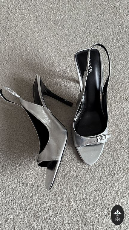 Läikivad kõrge kontsaga kingad.