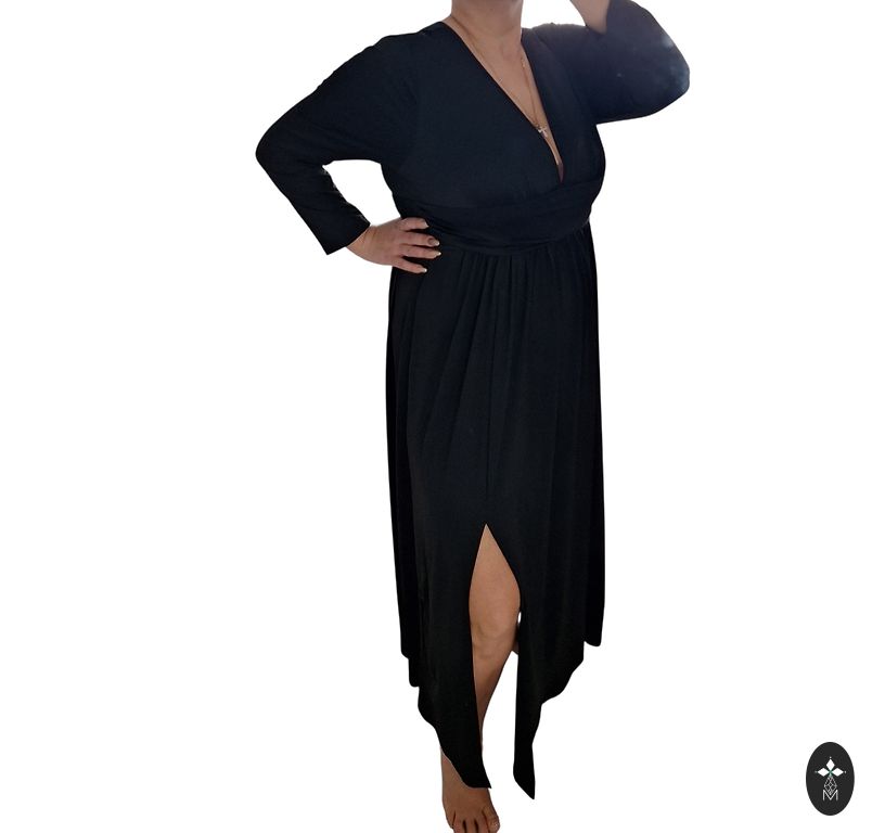 The length of the dress is approximately 150 cm from the shoulder, for a height of 1.75 m; waist ~ 77 cm The dress has three layers: an underskirt (opaque) with boning in the bust area like a corset, and a black tulle skirt!