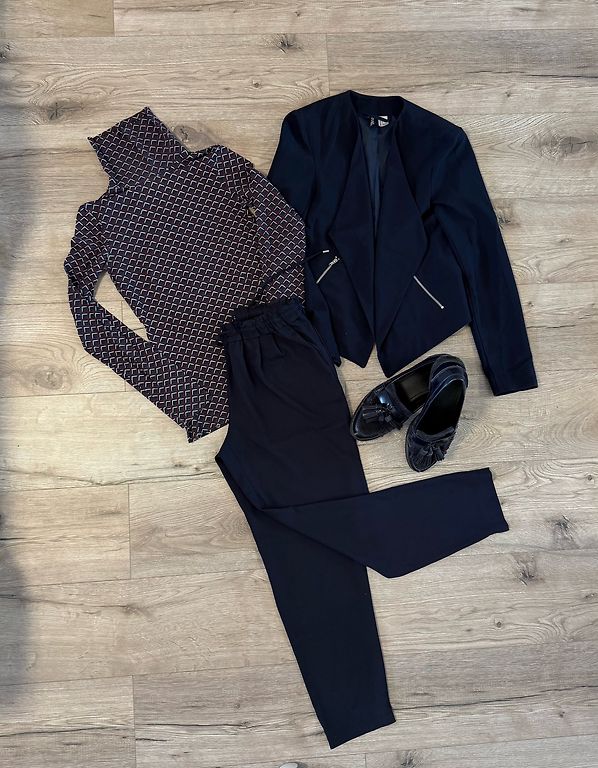 Komplekt: lühikesed püksid + oversize tüüpi pluus. Kerge materjal, pluusil on taskud, sobib S-M.