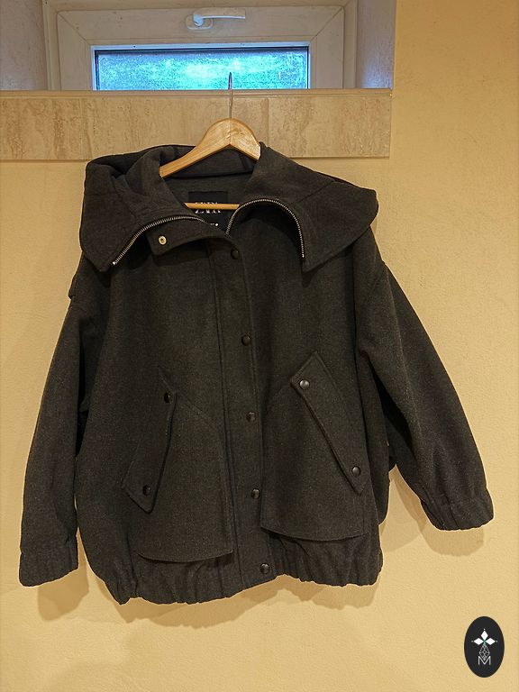 Kevad- ja sügishooaja jope. Ilma defektideta. Veidi lühendatud. Pehme, meeldiv ja soojustatud. On kaks taskut ja sulgub nii trukkide kui ka tõmblukuga.