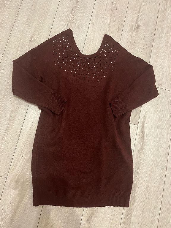 Ilgis 103 cm, krūtinė 52 cm x 2, klubai 65 cm. Suknelė turi kišenes abiejose pusėse. Dydis 44.