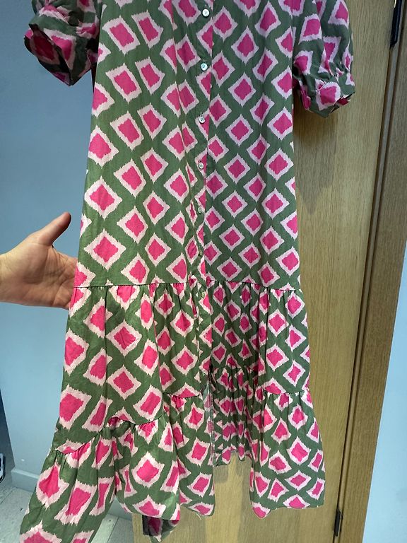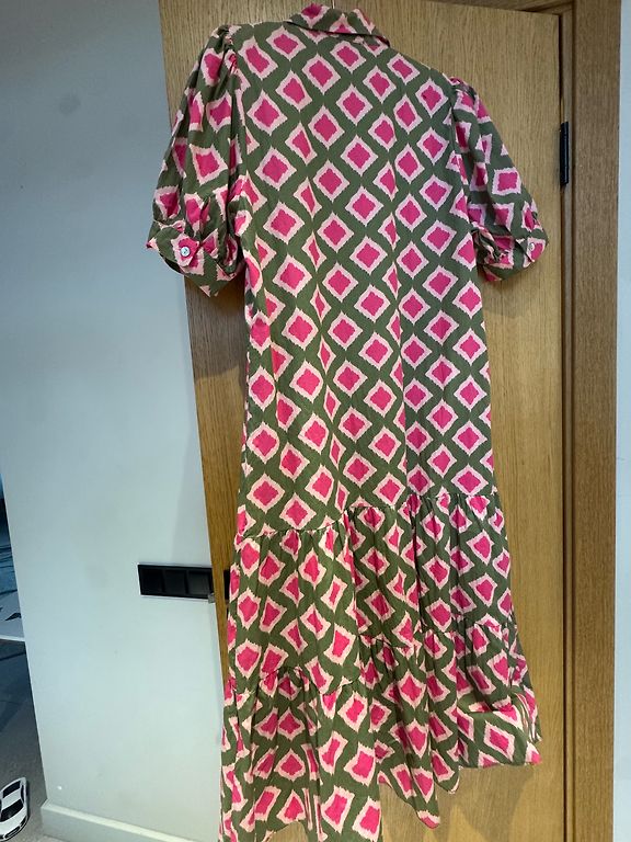 Fantastiliselt ilus LUZABELLE volangidega mini kleit/tunika või pikk särk. Ees kinnitus nööpidega. Aktsentkrae üles volangiga. Materjal 65% puuvill. Suurus märgitud M/L. Pikkus 86 cm, rind 54 cm, talje 55 cm, puusad 58 cm. Kantud 1x, uue toote seisukord. Ainult ostes, taga küljel triip, viimasel pildil näha.