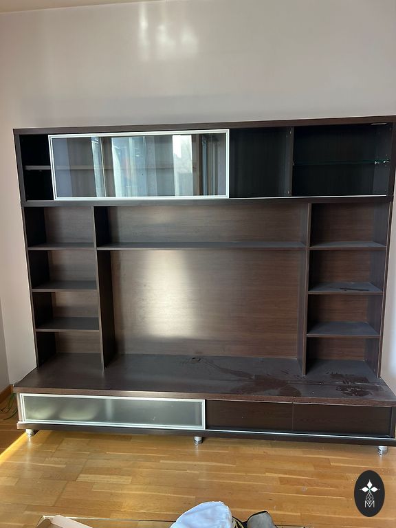 Due to changes, I'm selling a living room set in good condition. Very spacious. TV stand, small shelf above the TV, and 2 large shelves with doors. A dresser is also available. More photos and info privately. Self-pickup from Jaunmārupe, 2nd floor. We can offer moving services for an appropriate fee.