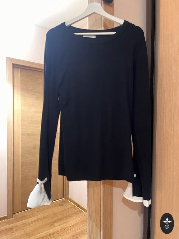 Müün valget seljaga avatud kampsunit. Suurus M, kahjuks mulle liiga suur. Materjal on väga meeldiv, pehme nagu Zara põhilised topid. Ees on kahekordne materjal.