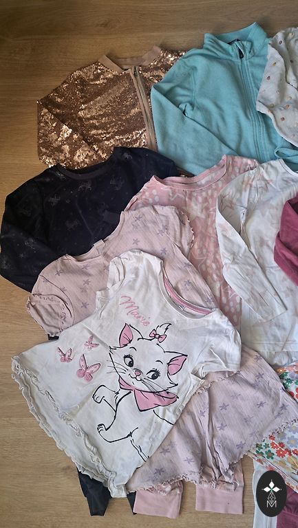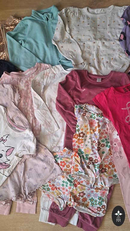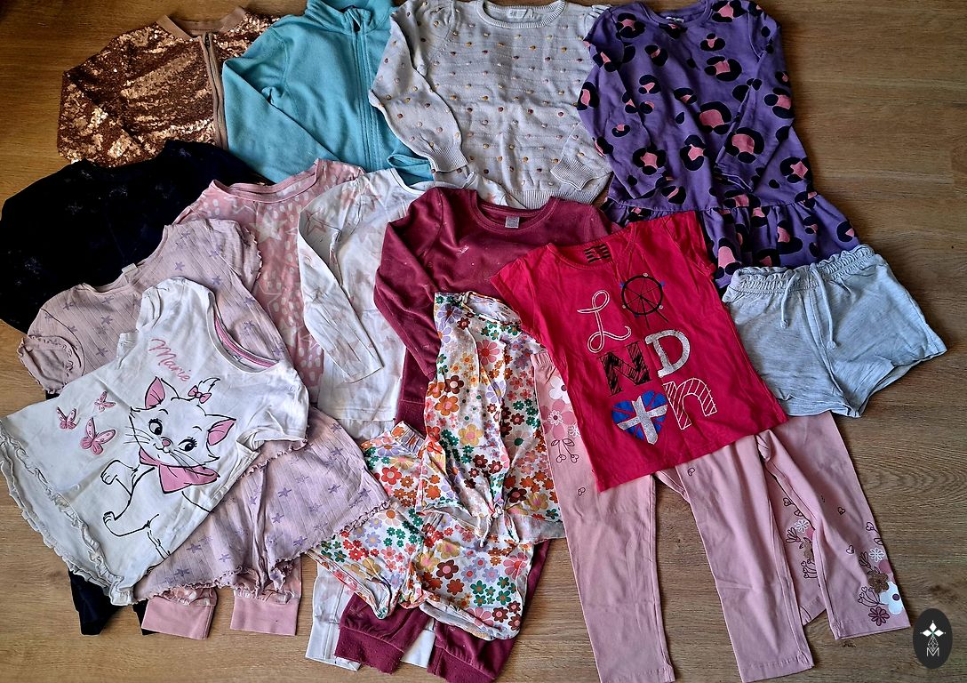 Selling a used clothing set for a girl aged 4-5 years (110-116 cm), the set includes: a beautiful festive jacket, denim skirt (signs of wear visible on one side, see photo), long fabric leggings, shorts, and a one-piece swimsuit.