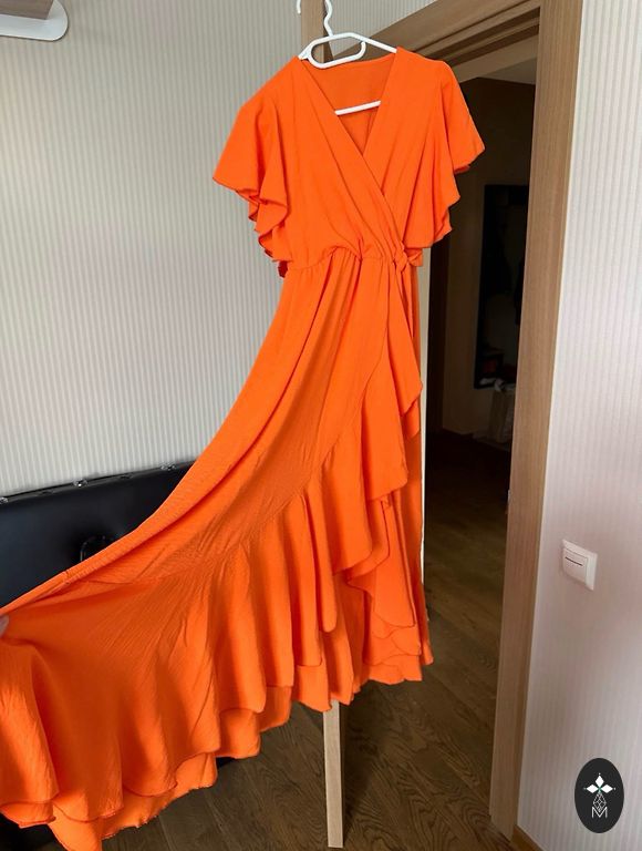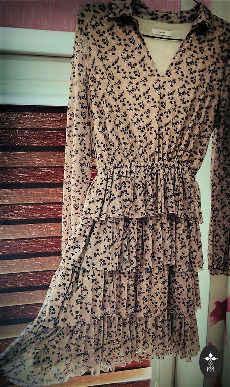 Väga kvaliteetne kleit nahale meeldivast materjalist hullumeelselt ilusa lillemustriga. Kleidil on väga hea langus. Õlgade osas on tugev kangas, mis on sisse töötatud varrukate laiendamiseks. Kleidi pikkus 174 cm kõrguse korral kuni pool sääremarjani. Suurus on märgitud 38. Kõige paremini sobib 38. ja 40. suurusele. Värv nagu internetifotol.