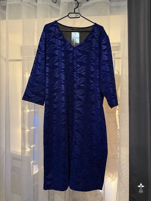 Uus, sildiga. Suurus L. Rindkere ja puusade ümbermõõt kuni 110 cm. 98% polüester, 2% elastaan. Peen kootud kangas. Midi-pikkusega. Sobiv disain. Kaelusega. Varrukateta. Narmendav viimistlus. Peo- ja ürituste kollektsioon. Festivalide hooaeg.
