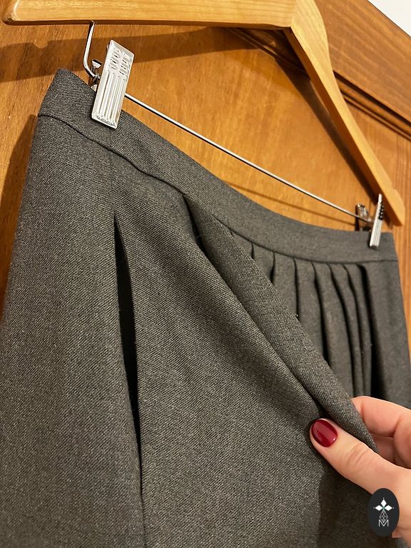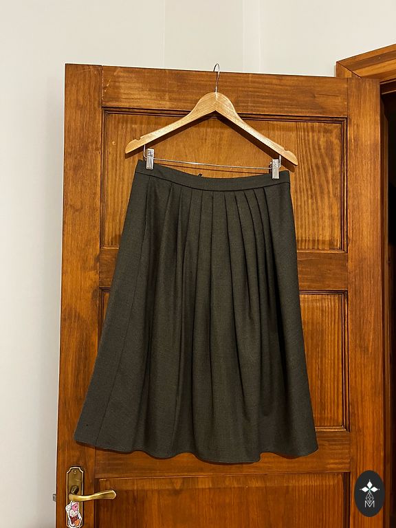 Linen skirt with pockets, with lining. Classic with a slit at the back, can fit a narrow belt. The tone will match both colorful and white tops/with a white blouse - a perfect look! Measurements - waist 43x2, length 59cm, hips 52x2cm.