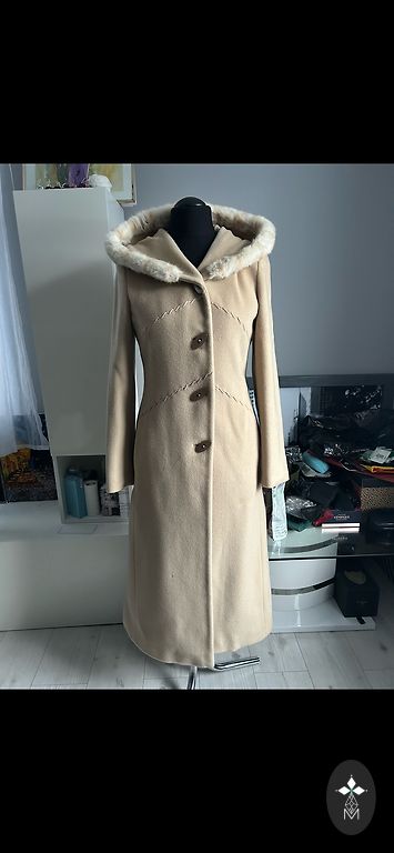M-L. Dress: length-95, bust-106, waist-106, sleeve-15cm…, Coat: length-93, bust-104, waist-98, sleeve-65, shoulders-10cm.(No belt. No dry cleaning.) Original.