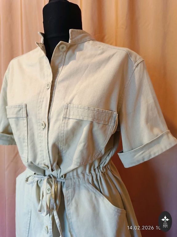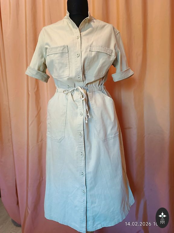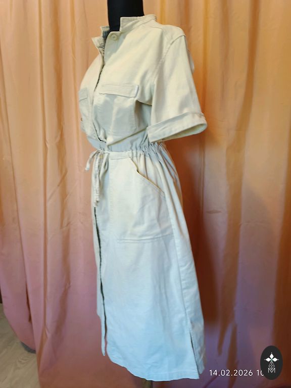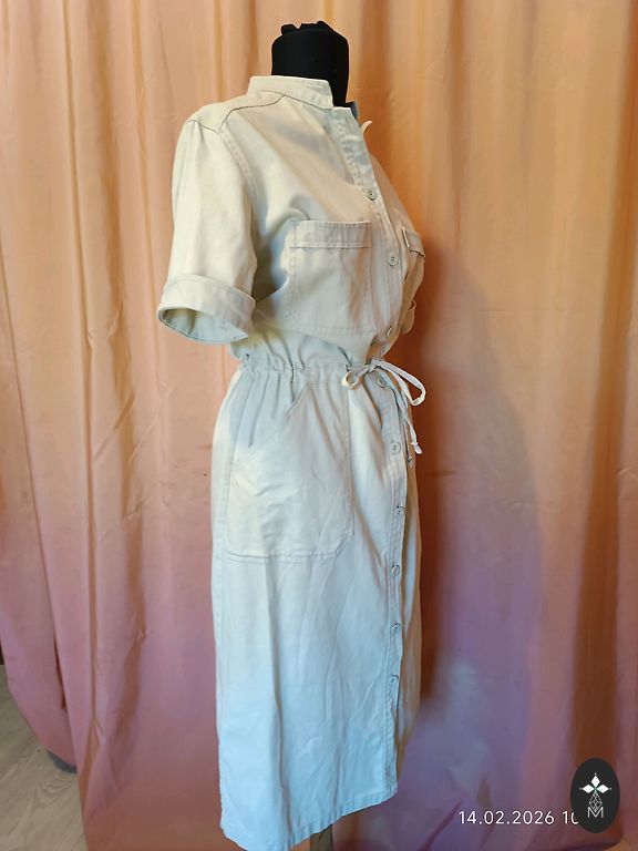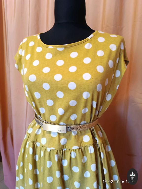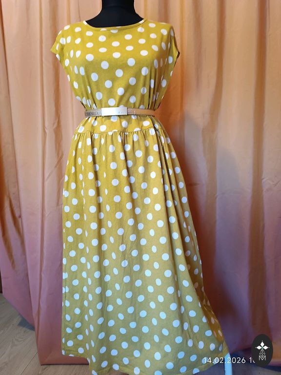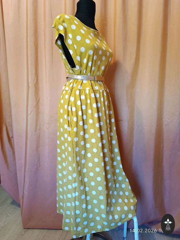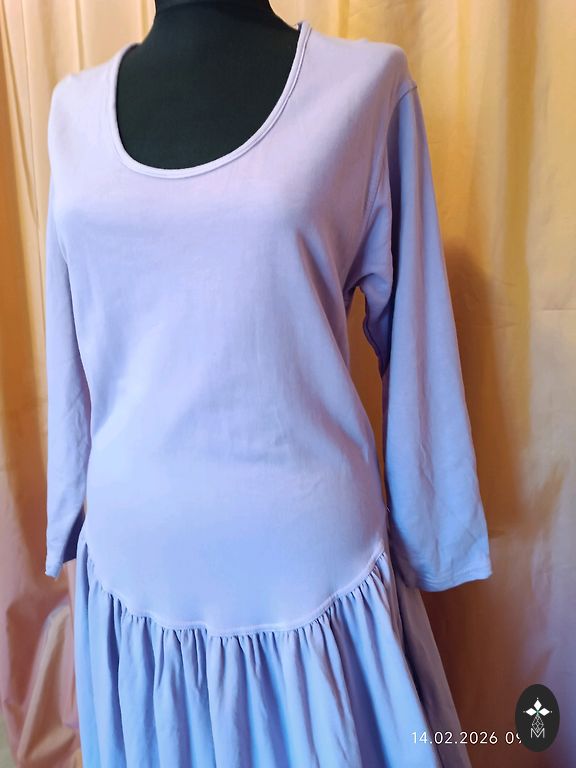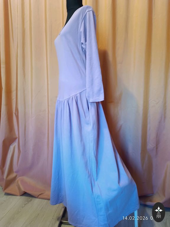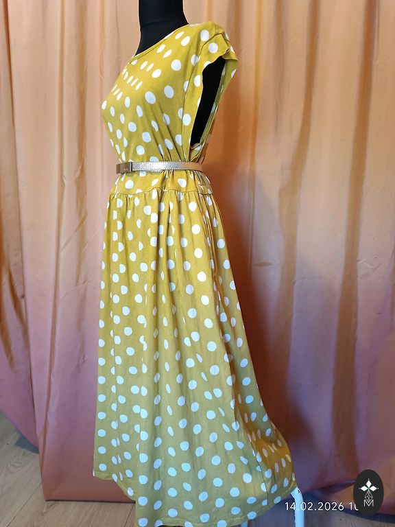 Striped pearl. Unfortunately, a bit too narrow for me. :( Bust 47.5 cm, total length 145 cm. Sleeves are half-length. Labeled as size 44, but it's a bit smaller. I would say it fits L, smaller XL size. Worn once.