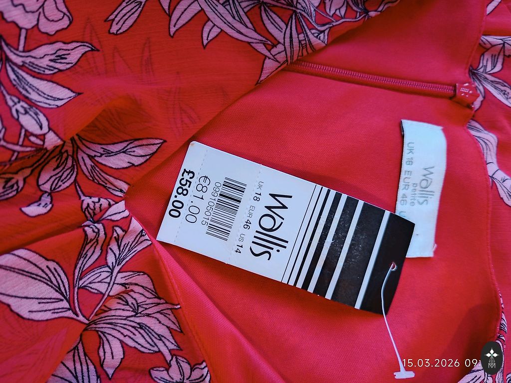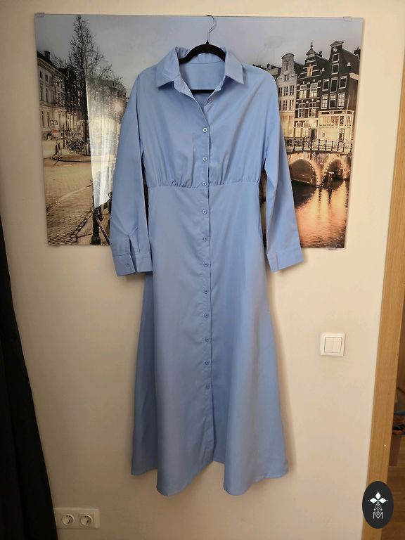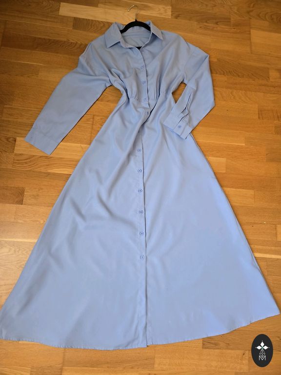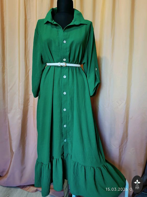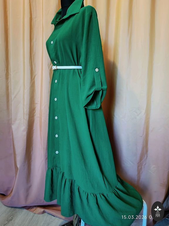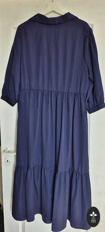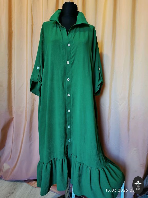 Uus, kandmata, puudusteta. Seelikul maitsekad volangid, rinnapartii all elastne. Elegantne värv ja lillemustriga. Sobib kõikideks aastaaegadeks. Valmistatud Itaalias. Rinnapartii 100 cm. Pikkus 145 cm. Varruka pikkus õlast 65 cm.