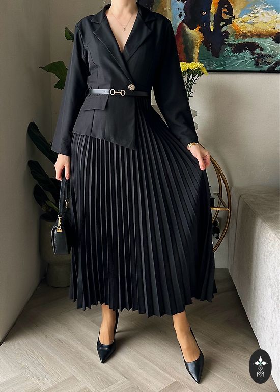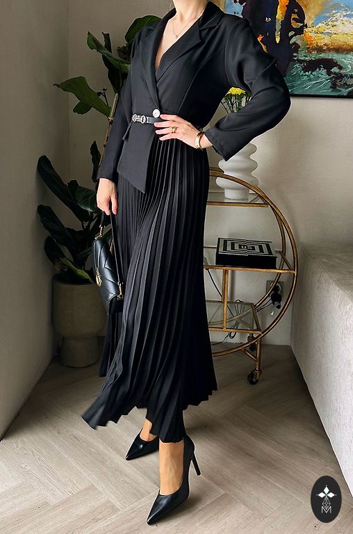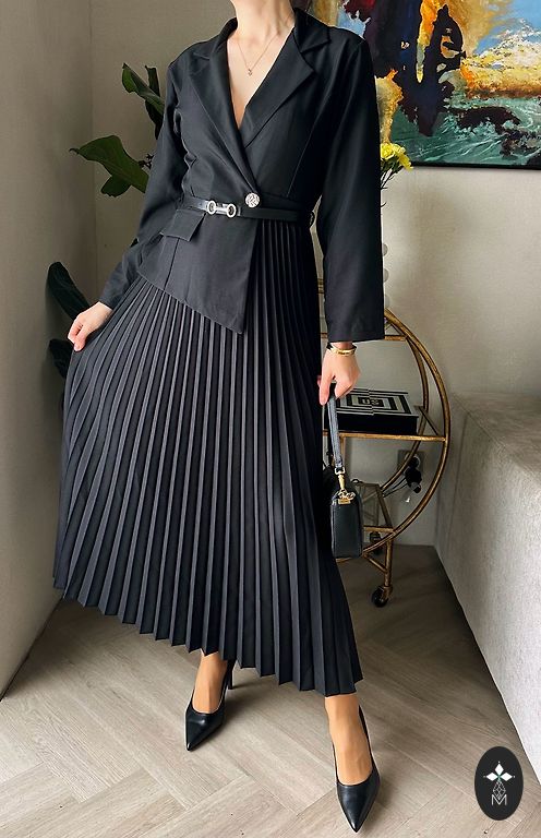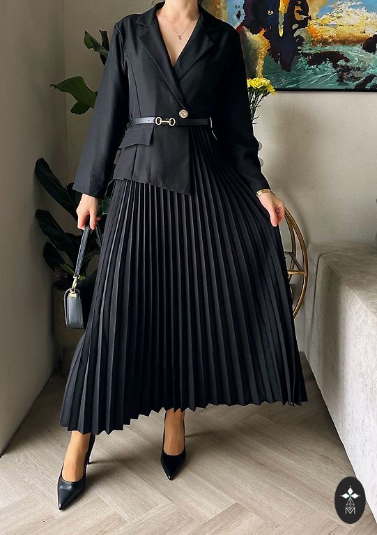 Talje 74cm, puusad 84cm, rinnad 90cm, seeliku pikkus 57cm, taga lõhik.