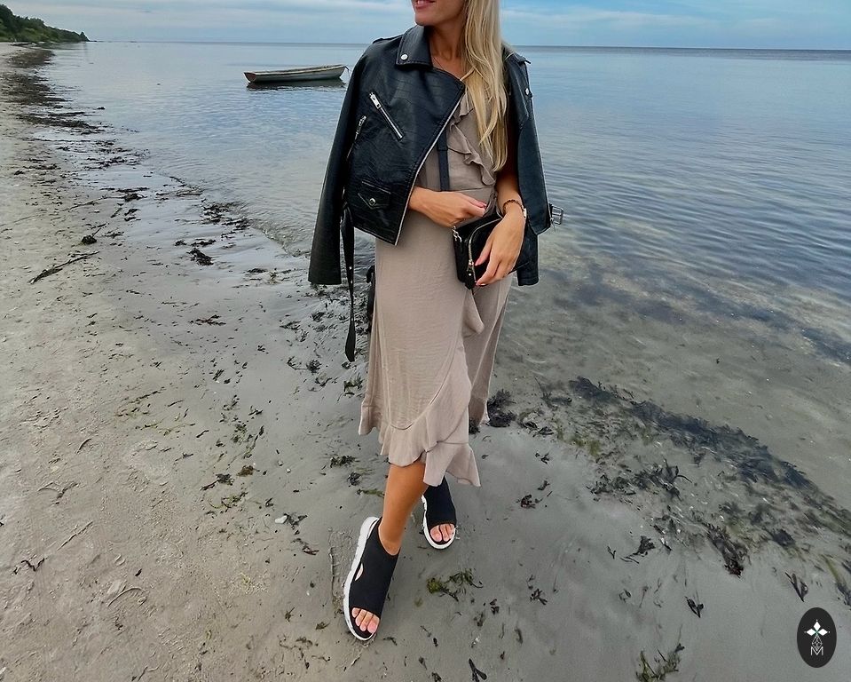 Žakete ir brīvā tipa un tai var uzlocīt piedurknes un piestiprināt ar pogām.