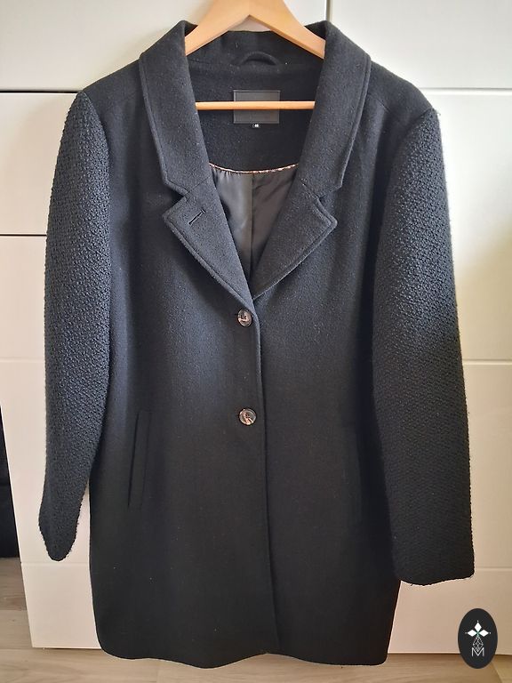 Very warm. A jacket from Soyaconcept. It's the perfect size, but it could also fit an XL. I haven't worn it for the last two months since I bought it, so you could say it's like new.