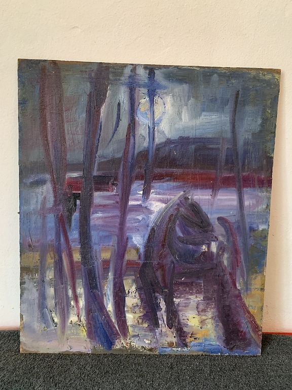 Bruno Amadio (1911-1981), liaudies žinomas kaip Bragolinas. Vienas iš 27 paveikslų, sukurtų pokario Venecijoje. Su rėmu 78x60cm. Drobė.