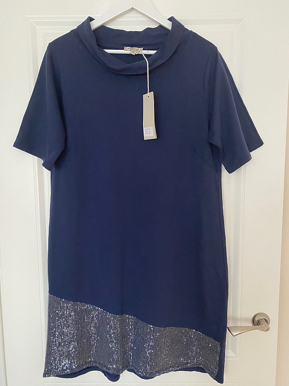 Uus, sildiga, fantastiline šokolaadivärvi siidkleit volditud talje ja huvitava "kahekihilise" konstruktsiooniga, mis täidab välimuse elegantsi ja diskreetse luksusega. Külje peal tõmblukk, mansetil 2 nuppu. Tootja suurus 44.