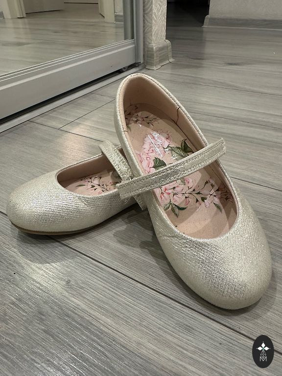 Very cute Mary Jane-style girls' shoes with straps across the instep. Size 27, soft inner sole. Flaws: a couple of inconspicuous "scratches."