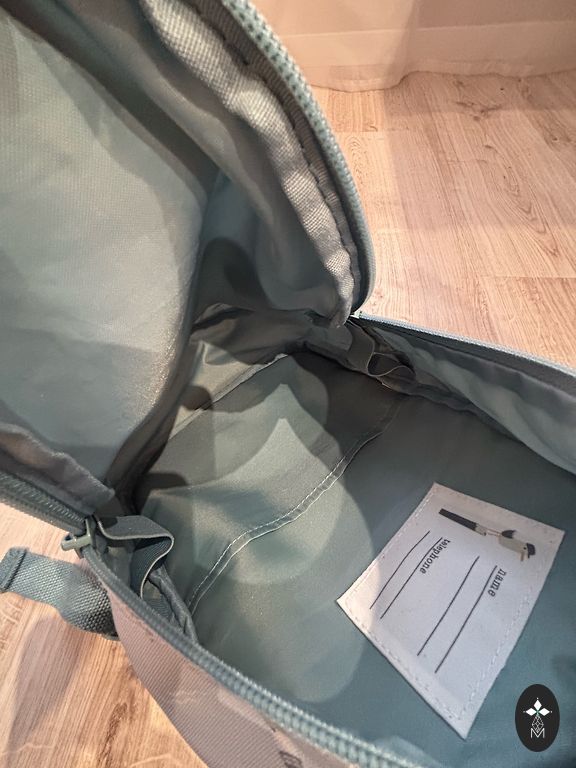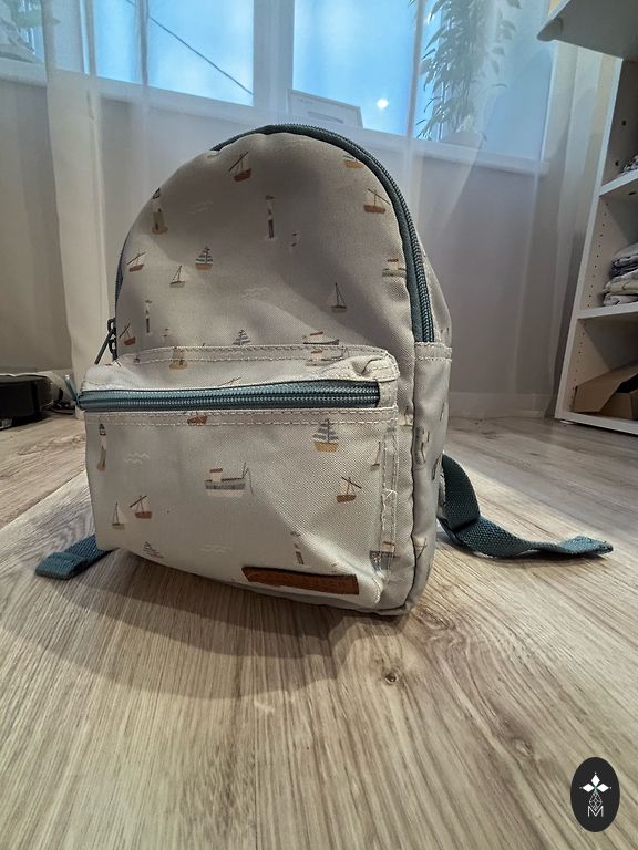 Somiņa ar pavadiņu .Lielisks palīgs vecākiem,lai mazais ne muktu prom un nenokristu.Mes izmantojam tikai somiņu.Ir vietām mazi mini traipini.Nekas uzkritoss.viss atmazgājams.
