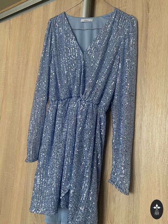Asimetrinė (priekyje trumpesnė, gale ilgesnė) marškinių suknelė kasdieniam nešiojimui. Puikiai atrodo su siaurais mėlynais džinsais ir kasdieniais batais. Pečių plotis: 39 cm; krūtinės apimtis: 45 cm; juosmens apimtis: 39 cm; priekinės dalies ilgis: 90 cm; užpakalinės dalies ilgis: 117 cm.