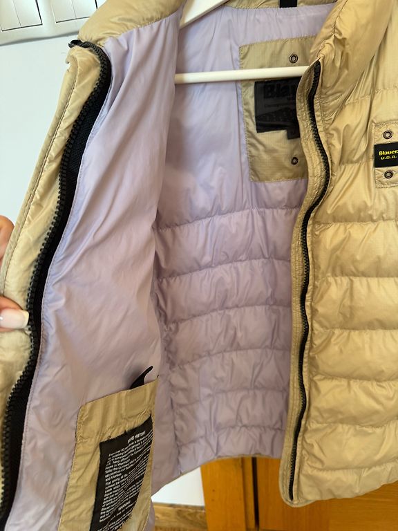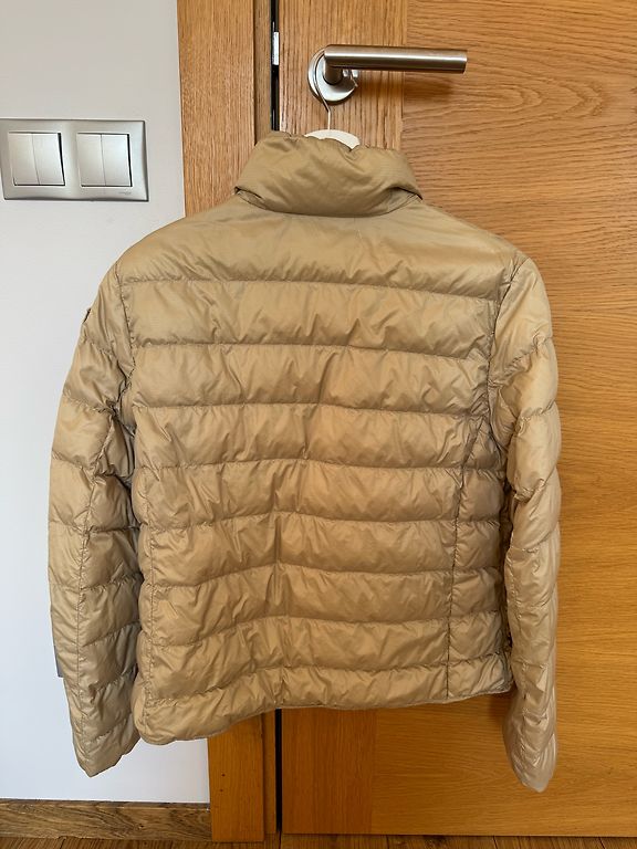Beež, kapuutsiga, soojustatud taskud👍. Pikkus 94 cm. Võib kanda ka vööga. Täidis – sünteetiline polster. Itaalia, sobib suurustele S kuni väike L.