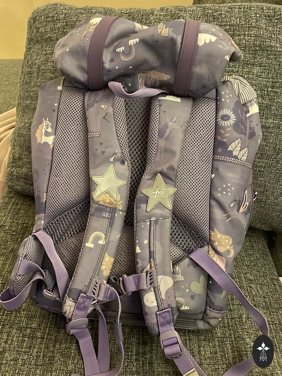 Bought new, worn by one careful girl, these bags are really high quality and easy to care for, and are still in very good condition. Visually, they are not perfectly clean in places, and the biggest flaw is a broken clip on the (lower) straps - you can simply replace it with another clip of the same size or do without it (you will not be able to fasten the straps).