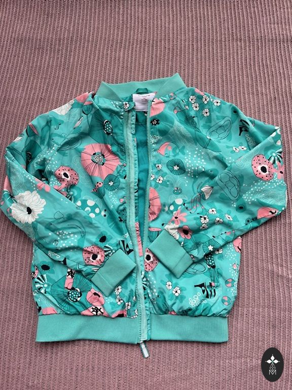 Tinka ir žiemos sportui, yra pažastų ventiliacija, kišenė ant rankovės, sniego juosta. 10k membrana. Krūtinės apimtis 44 cm, rankovės ilgis 55 cm, ilgis 58 cm.