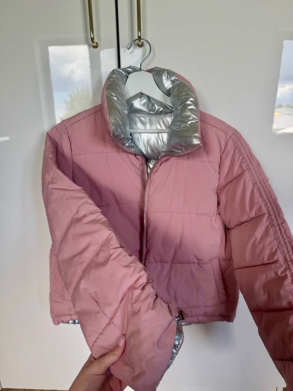 Rudens ir pavasario kepurė. Užsegama 2 užtrauktukais. Rožinės grožio kišenėlės. Atsparus drėgmei.Su kišenėmis.