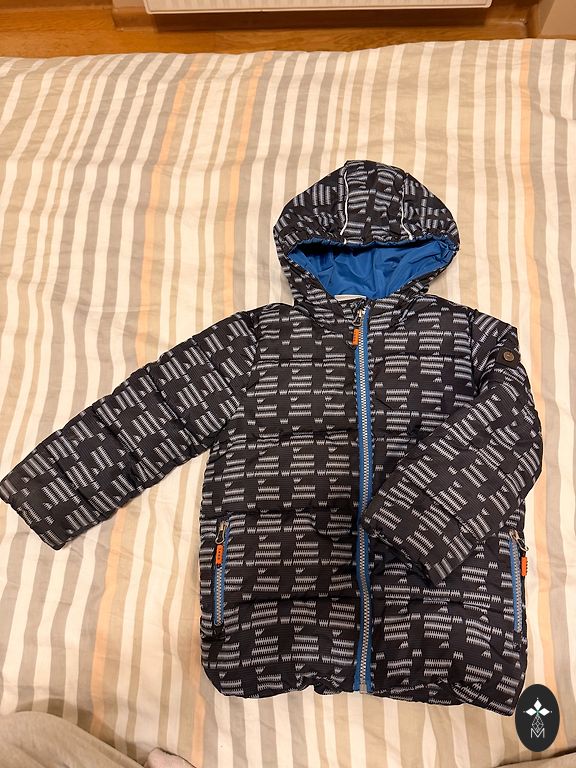 Priekyje ant gobtuvio matosi dėmė. Ant kišenės ir nugaroje ant peties yra nedidelis nusidėvėjimas, matomas nuotraukoje.