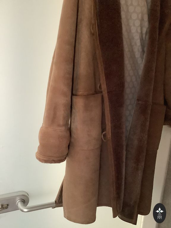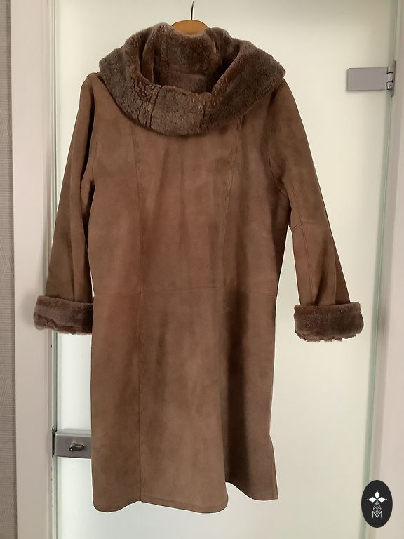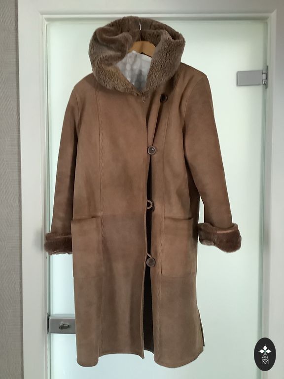 Fur (mountain goat) jacket with knitted wool (100%) trim, in good condition. Entirely made of natural material, very warm.