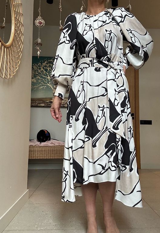 Этикеток нет - я бы сказала, что размер XL. Все необходимые размеры пришлю по запросу. Куплено в магазине