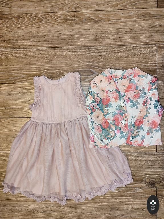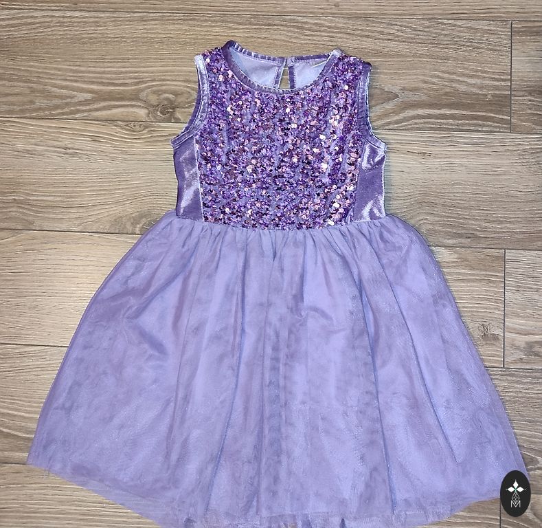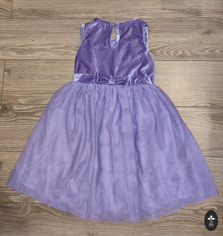 Svīnīga kleita, 110.izm (4-5 gadi). Uz muguriņas ir neliela lietošanas pazīme, kas nav pamanāma.
