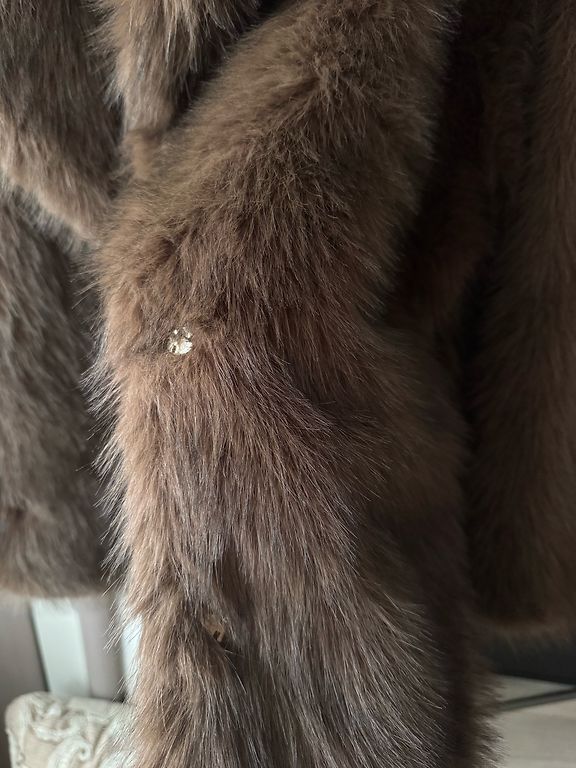 Очень красивая, качественная, густая меховая шуба, мех не выпадает, плотная. Сама шубка легкая. На вид и ощупь как шиншилла. Идеальное качество. Oversize подходит стабильно от S до L.