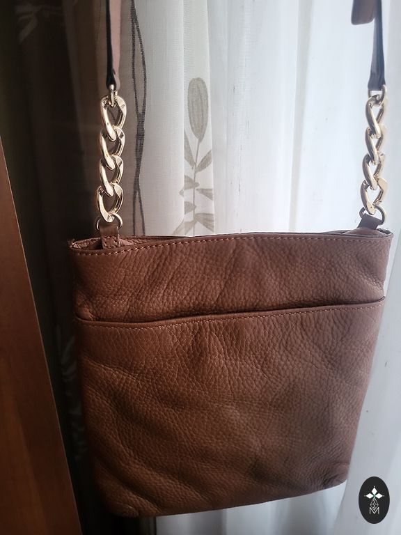 Karamellivärvi, kuldse värvi metallosad. Jäik struktuur. Perforeeritud koti käepide sallide kinnitamiseks. Sisemine tasku tõmblukuga. Sobib hästi täielikult musta või meremehe stiilis riietusega. + Saatmiskulud
