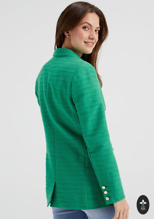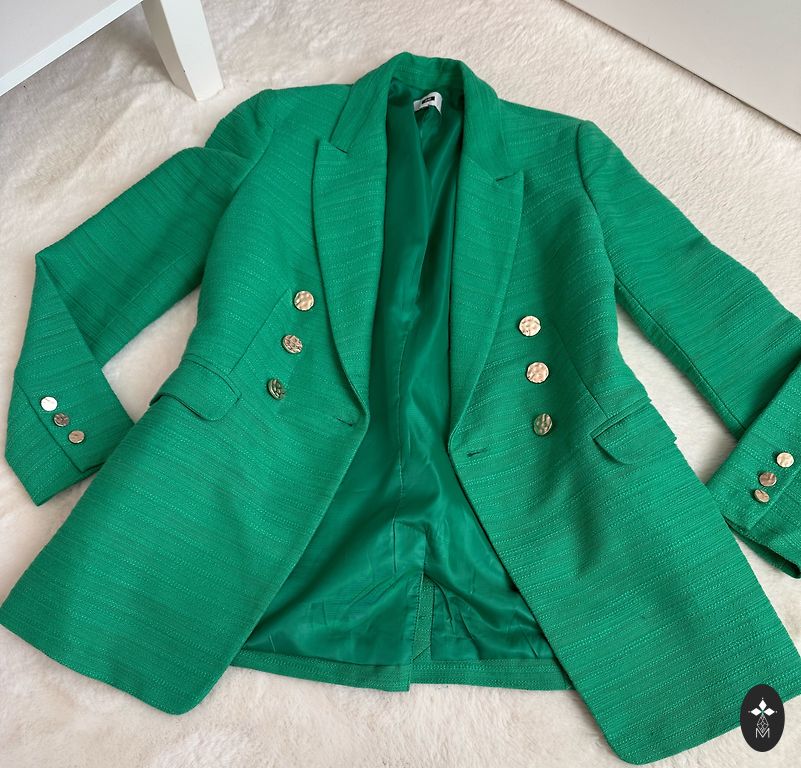 Продаю жакет, который можно надеть с платьем или брючным костюмом. Не классической длины - полудлинный, стильный. Длина - 31 см; длина рукава - 46 см. На плечах небольшие подплечники.