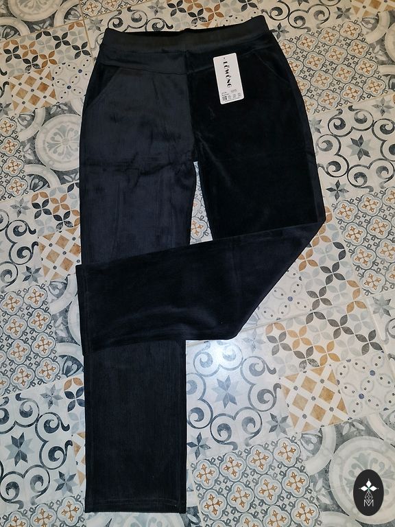 Itaaliast pärit, kaunis, rikkalik lilla toon, kuid minu jaoks liiga väike. Püksid sobivad ideaalselt XS, S ja väikese M suurusega inimestele. Talje 66–74 cm, puusad kuni 100 cm, pikkus 96 cm. Sobivad ideaalselt kuni 165 cm pikkustele tüdrukutele! Kangas on väga meeldiv, pehme, sametine ja väikese mustriga. Vöö on võimalik soovi järgi vahetada.