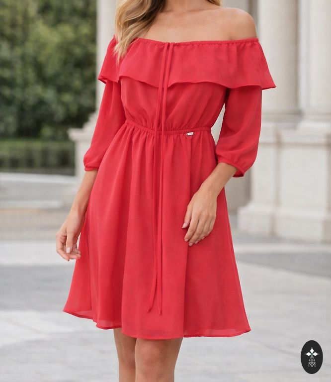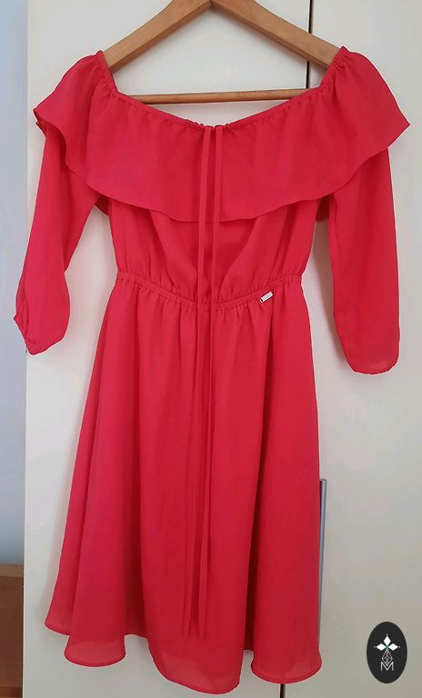 Raudona šilta suknelė su megztiniu