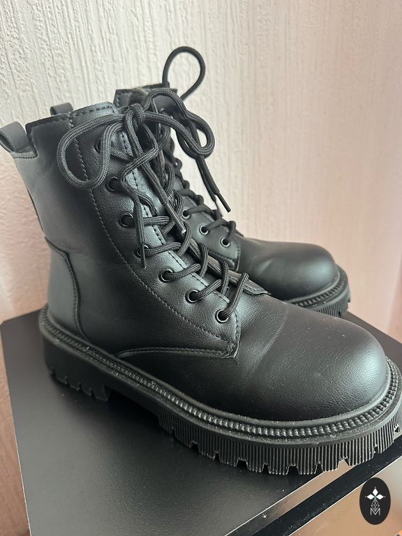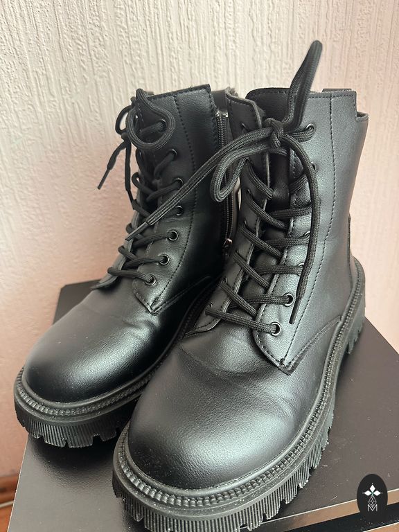 Mustad poolsaapad aktsendiga, suurus 38. Kontsa kõrgus 9 cm.