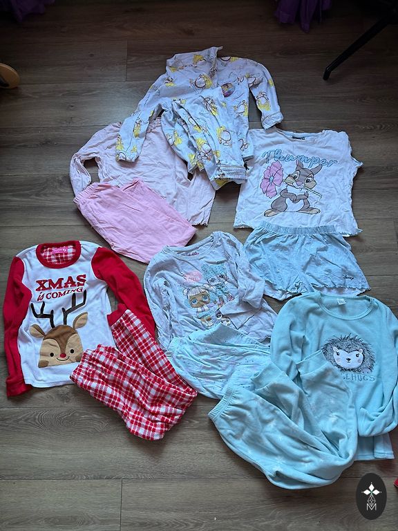 Soe, pehme ja pehme materjaliga pidžaama/koduriietus ja õhemast fliismaterjalist pidžaamapüksid suuruses 122/128. Heas seisukorras ilma defektideta. Pükste pikkus 74 cm, džempri pikkus 47 cm. Saadan pakiautomaatidega vastavalt Andele hinnakirjale.