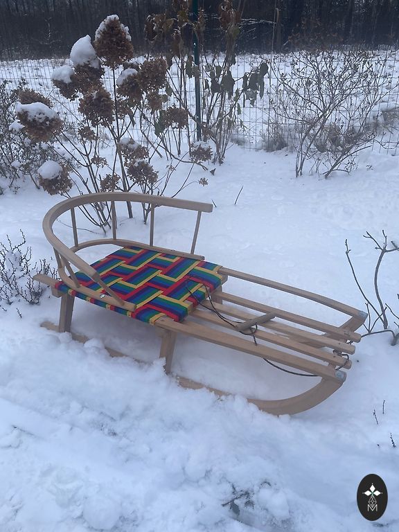 The sled is almost new, used twice. The child has grown, the top can be removed, and it can be used as a simple sled.