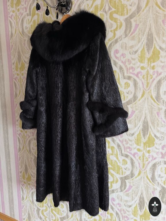 42 suuruses mantel, väga kerge, minu jaoks liiga pikk. Daamidele üle 170 cm on suurepärane. Värviüleminek tumedast pruunist helekreemini. Väga harva kantud, Riias teist sellist ei näe.