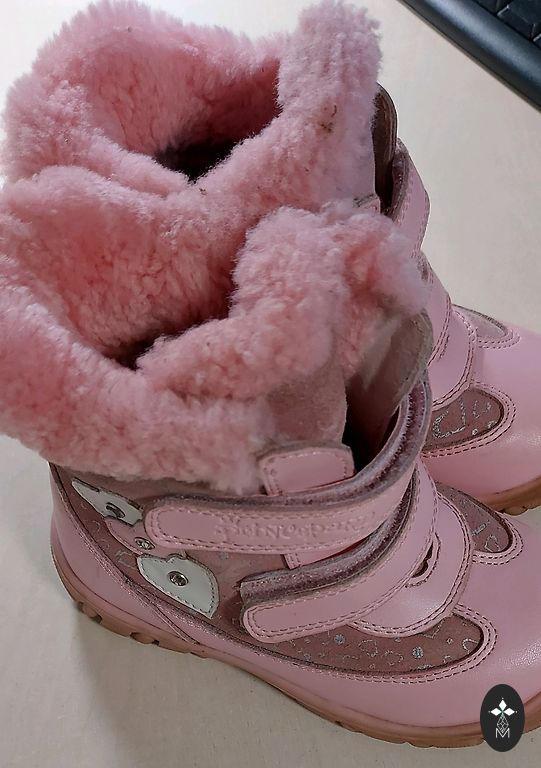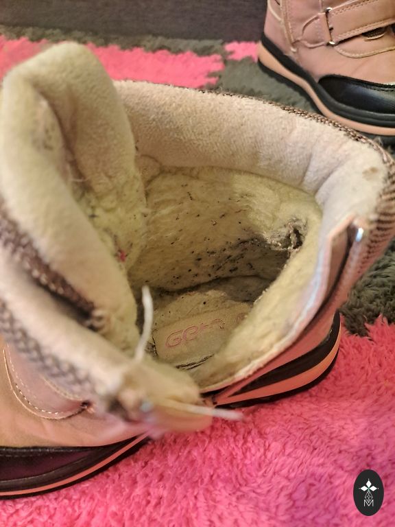 Siltie ziemas zābaki, labā stāvoklī. Lipekļi līp ideāli, ir nelielas lietošanas pazīmes-nedaudz padilusi krāsa purnkalos. Iekšpēdiņas izmērs (no/līdz) 16 cm.